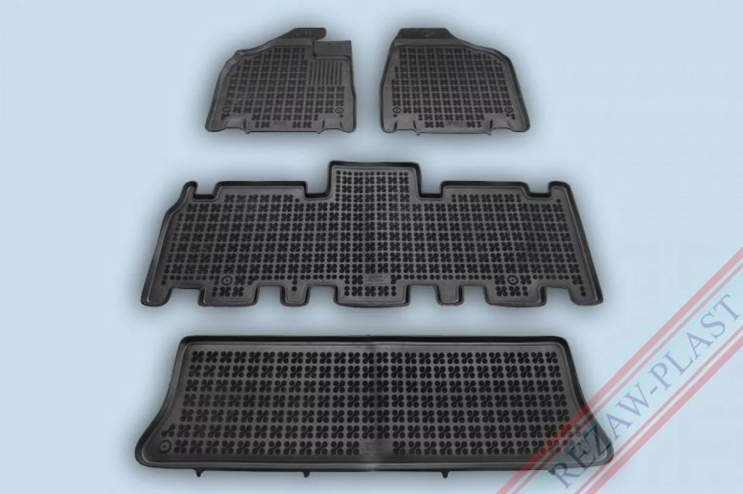 • A REZAW-PLAST magasperemű gumiszőnyegek 3-5cm magas peremmel rendelkeznek, melyek tökéletesen illeszkednek az utastér padló formájához.